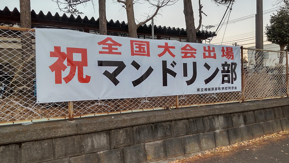 ★ 在校生の嬉しいお知らせ!! 2023-01-23 最終更新日時 : 2023-01-23 dousoukai 母校、県立相模原高校の マンドリン部 が昨年の12月に県大会で優勝し、 今年の8月に行われる 全国大会に出場 することになりましたのでお知らせいたします。 同窓会では、早速お祝いの横断幕を寄贈させていただきましたところ、 バス停近くのフェンスに掲げられた幕の写真が県相から届きました。 全国大会でのご健闘をお祈りいたします!! \ 最新情報をチェック /
